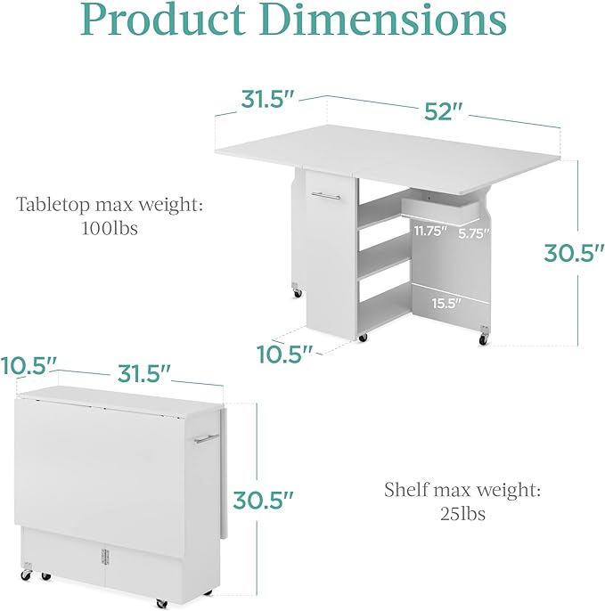 La struttura compatta lo rende perfetto per ambienti più piccoli. La superficie del tavolo si blocca in posizione, sia aperta che chiusa, per evitare movimenti indesiderati.